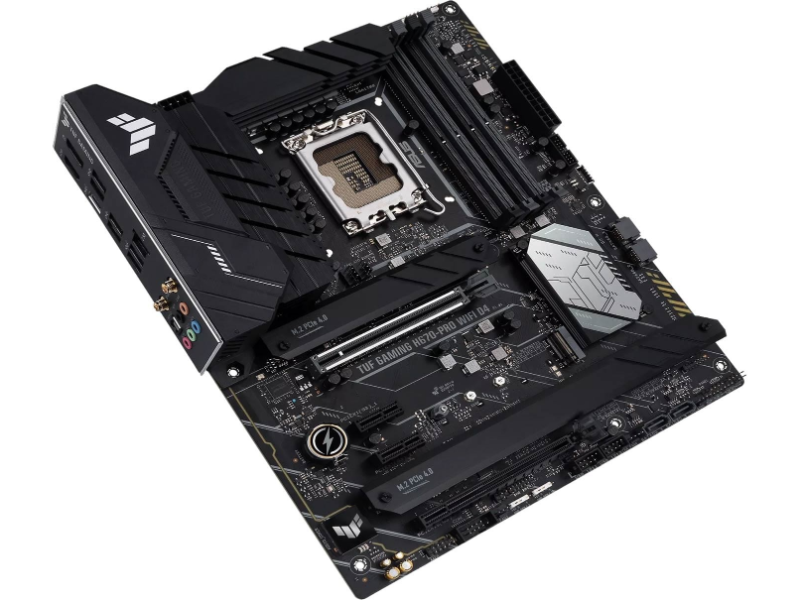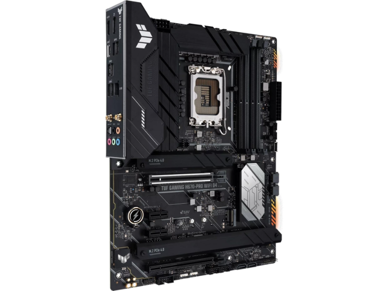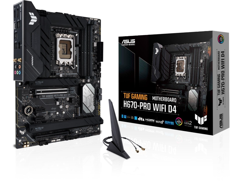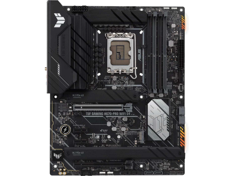 ASUS TUF GAMING H670-PRO WIFI D4 takes all the essential elements of the latest Intel processors and combines them with game-ready features and proven durability. Engineered with military-grade components, an upgraded power solution and a comprehensive cooling system, this motherboard offers rock-solid and stable performance for marathon gaming. Aesthetically, TUF GAMING H670-PRO WIFI D4 sports the new TUF Gaming logo and incorporates simple geometric design elements to reflect the dependability and stability that defines the TUF Gaming series.