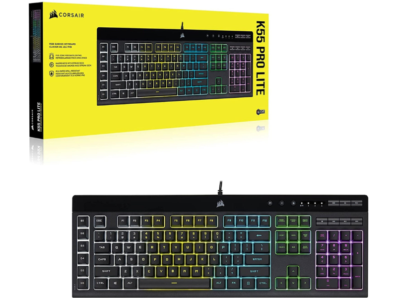 The CORSAIR K55 PRO LITE RGB Gaming Keyboard lights up your desktop with five-zone dynamic RGB backlighting and powers up your gameplay with six dedicated macro keys.