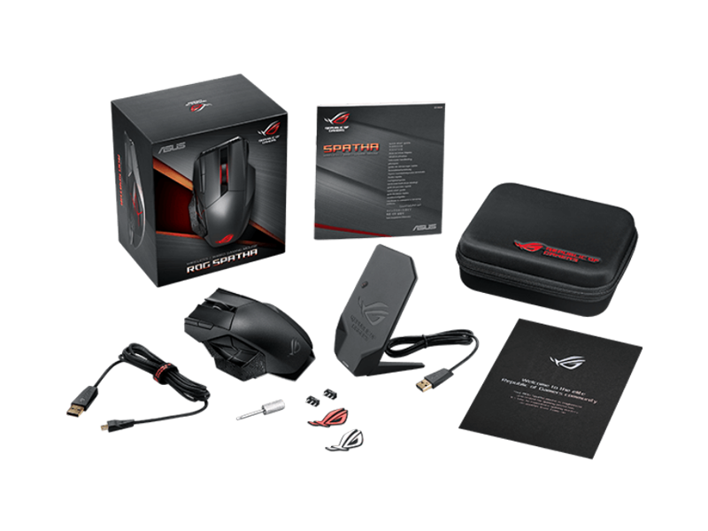 ASUS ROG Spatha wired/ wireless MMO gaming mouse features 12 programmable buttons; 8200 DPI laser sensor; Aura RGB and easy-swap. Complete control for MMO victory.