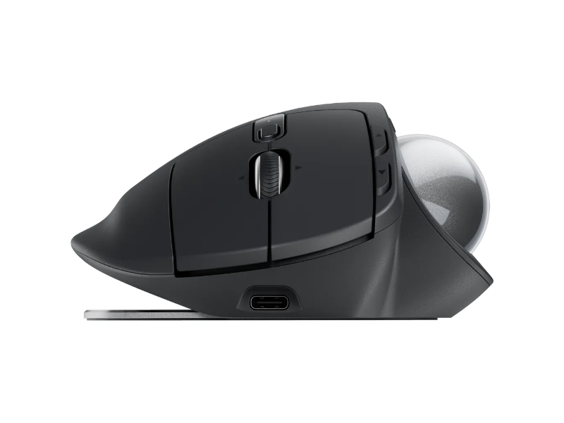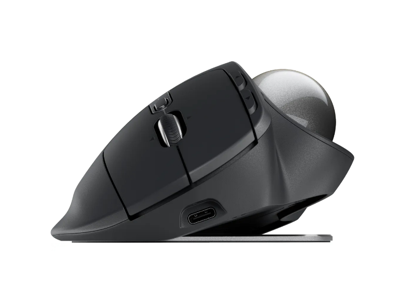 Experience peak comfort and performance with MX Ergo S advanced wireless trackball, certified by ergonomists, with a 20-degree tilt angle for less muscle strain in your forearm. Now with quiet clicks and quick USB-C charging.