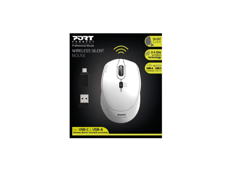 Work silently in comfort with the Port Connect Silent Wireless Mouse and its ergonomic ambidextrous design. This mouse is made with a precise 1600DPI optical sensor that allows for three different sensitivity levels and it utilises 2.4Ghz wireless technology that stays connected for up to 20m. Port includes a USB-A to Type-C converter in the box which gives this mouse broader compatibility alongside its plug and play features. Making it compatible with Windows, Mac OS, Chrome OS and Android.