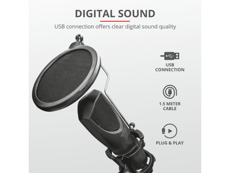 Add Review to Trust GXT 232 Mantis 1.5m USB Cable Black Tripod Microphone
