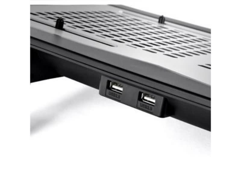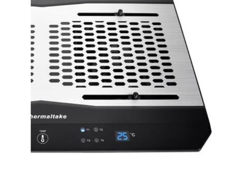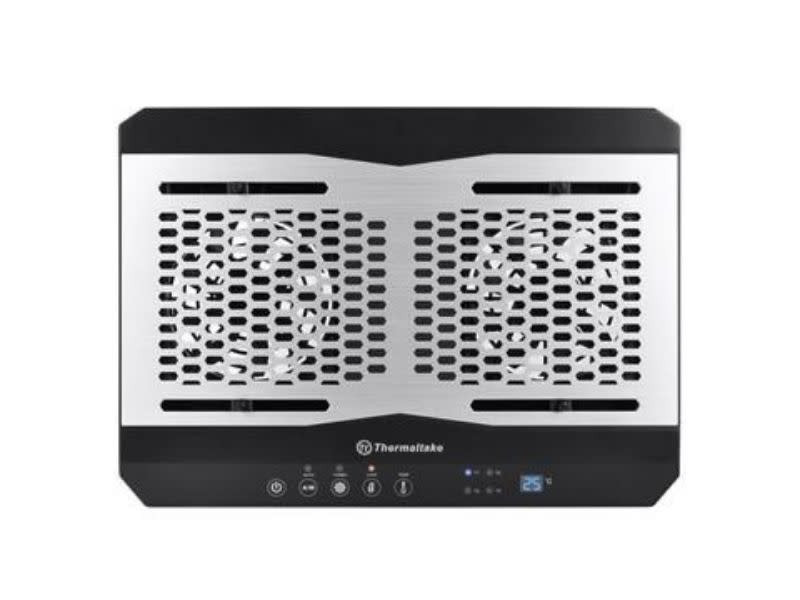 Massive TM notebook cooler, thin and light, designed with Thermaltake the first ever adjustable temperature sensor, display control panel, aluminum design and dual 120mm temperature regulated fans to suit user’s preference in accordance with the laptop size or various heat generated points to create the best thermal performance. The excellent ergonomic design makes the most comfortable viewing angle and hand position