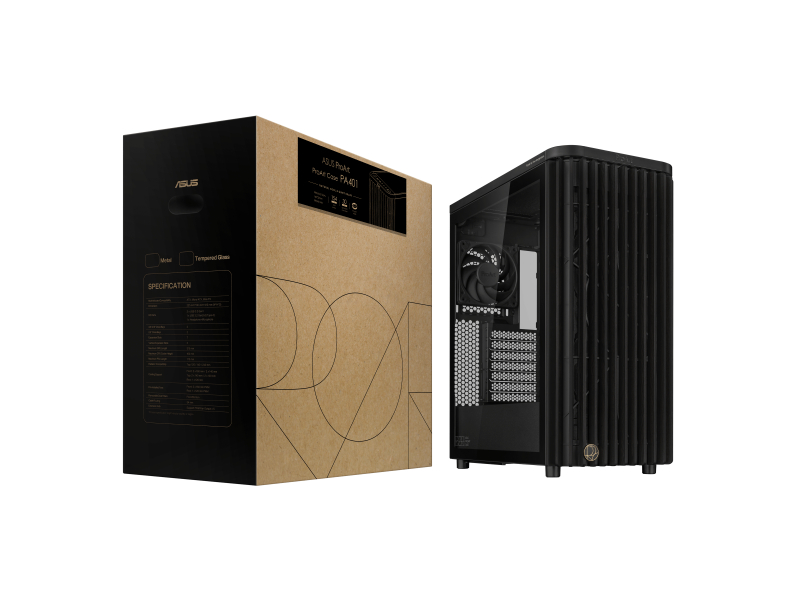 The ProArt PA401 Wood Edition showcases a wooden front panel that creates a distinctive, elegant style while promoting sustainability. The wood used is certified by the Forest Stewardship Council (FSC) and is finished using a six-stage process. The case also boasts optimal built-in cooling, with two 160mm front fans and one 120mm rear fan, along with an integrated fan hub, enabling optimal airflow.