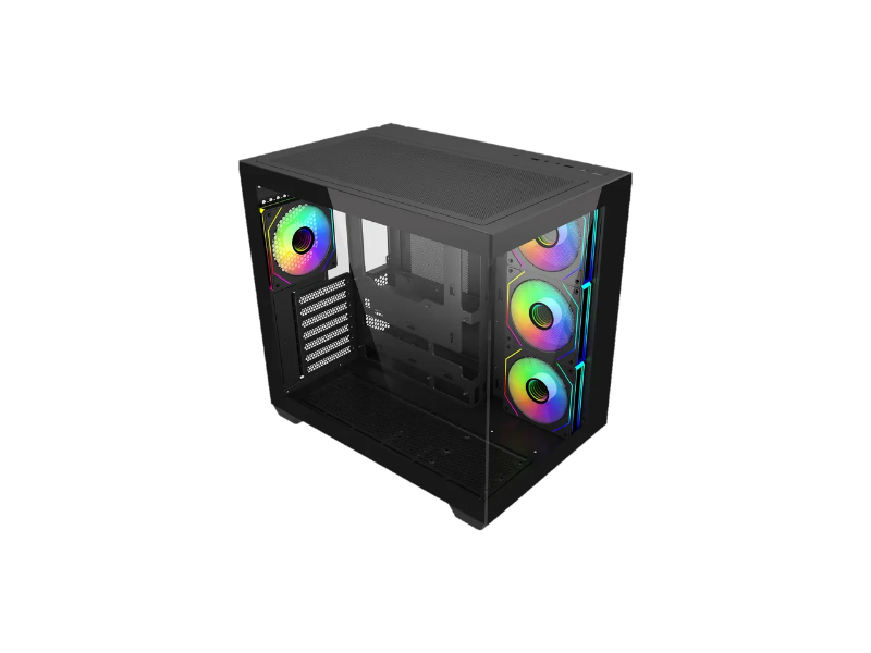 The Elite 681 redefines showcase builds with its panoramic 270° tempered glass panels and true dual-chamber layout. Designed for high-performance systems, it combines refined aesthetics with cutting-edge airflow engineering. From vertical cooling support to extensive radiator compatibility, this case is built to handle next-gen hardware with style and precision.