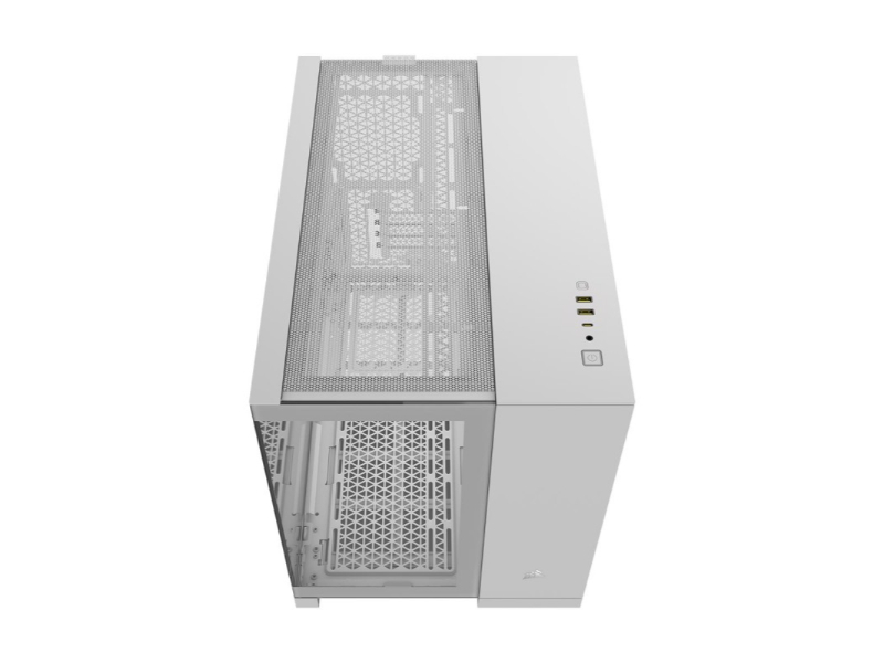 The Corsair 2500X White Mini Tower Dual Chamber Case delivers exceptional airflow and cooling with fully mesh paneling and a dual chamber design for an organized, stunning build.