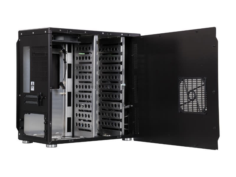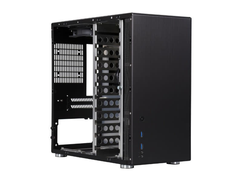 Lian-li PC-Q26B Black mini-itx chassis ( also works as NAS storage chassis for 11x storage devices ) , 200x395x410mm mini tower , No psu ( use optional standard psu , with psu bracket , 180° reversable for psu fan facing CPU or side panel )