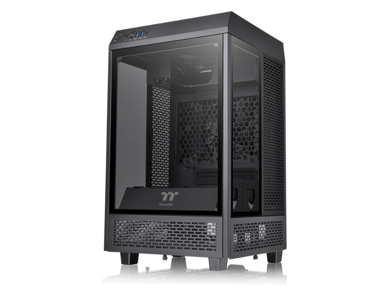 The Tower 100 is a vertically designed mini-ITX chassis with panoramic viewing. It comes with two preinstalled 120mm standard fans and three 4mm tempered glass windows at the front, on left and right side.