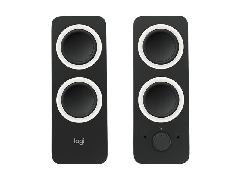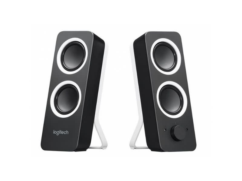 With 10 W of peak power, these modern-looking Logitech Z200 Multimedia Speakers offer rich, clear-quality sound. Two drivers per satellite generate balanced stereo and clear acoustics for a room-filling sound. With integrated volume and power controls on the front of the speakers, tweak the bass by adjusting the bass tone control wheel at the side. The Z200 provides a headphone plug-in to connect your headphones and listen to music in total privacy