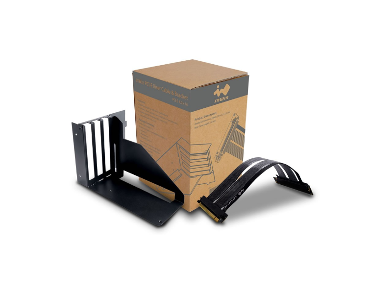 InWin’s PCI-E Riser Cable & Bracket set comes with a bracket that allows users to install graphics cards vertically to a case that doesn’t have a preset vertical mount. The riser cable connects to the motherboard and nicely showcases it. This 4.0 riser cable is fully compatible with INTEL and AMD motherboards and can be installed in most chassis* on the market. * This bracket supports InWin Chassis: 1-series, 3-series, 5-series, 9-series