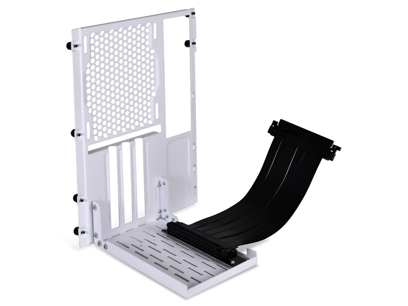 Vertical GPU mount accessory for the white O11D MINI which includes a 200mm long PCIe Gen3 x16 riser cable. Allows showing graphic card with simple installation and different configurations.